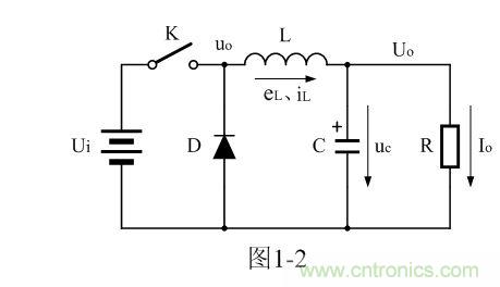 對(duì)于圖1-2,如果不看控制開(kāi)關(guān)K和輸入電壓Ui,它是一個(gè)典型的反 型濾波電路,它的作用是把直流脈沖電壓通過(guò)平滑濾波輸出其平均值。