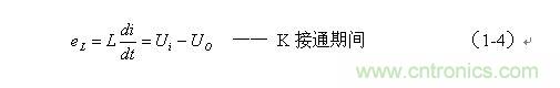 ;在K關(guān)斷期間,流過(guò)儲(chǔ)能電感L的電流上升率為: