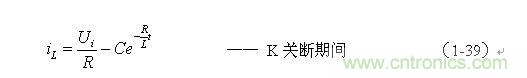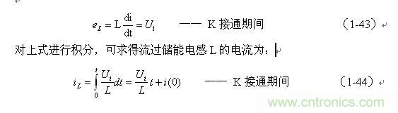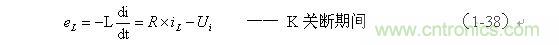 式中的負(fù)號(hào)表示反電動(dòng)勢(shì)eL的極性與(1-35)式中的符號(hào)相反,即: K關(guān)斷期間電感L產(chǎn)生電動(dòng)勢(shì)的方向與K接通期間電感L產(chǎn)生電動(dòng)勢(shì)的方向正好相反。
