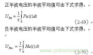 (2-69)、(2-70)式中,Upa和Upa-分別為各種脈沖波形的正、負(fù)半波平均值;Pu(t)和Nu(t)分別為各種脈沖波形的正波形函數(shù)(正半周)和負(fù)波形函數(shù)(負(fù)半周),τ為正、負(fù)脈沖寬度。大部分雙極性交流脈沖,其正、負(fù)半波平均值的絕對值都相等,但符號(hào)相反。