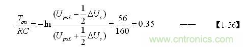 當(dāng)RC的值與開關(guān)管導(dǎo)通時(shí)間Ton完全相等時(shí),【1-46】式的值正好等于0.37,與【1-56】式的結(jié)果非常接近。或者當(dāng)紋波電壓