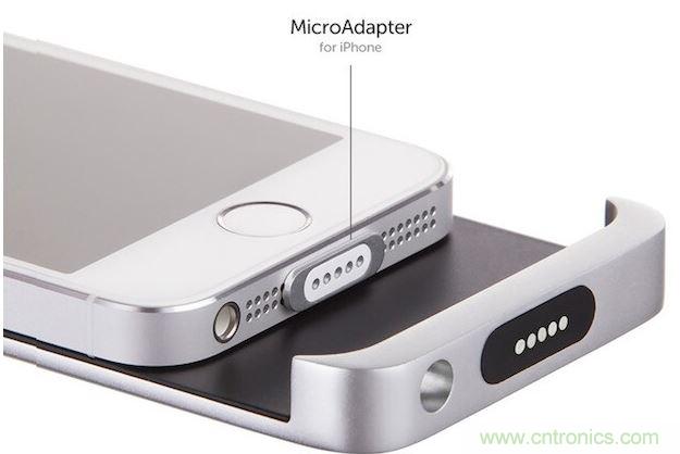 使用像MagSafe 一樣的連接線時,事先將被稱為MicroAdapter的小型配適器插入iPhone的Lightning端口。為了使充電用的Lightning連接線可以實現(xiàn)正常充電,通過使用配有MagAdapter的磁石連接口來連接實現(xiàn)充電。這是原創(chuàng)設(shè)計所以不能說該產(chǎn)品使用了便攜式MacBook的充電連接線。