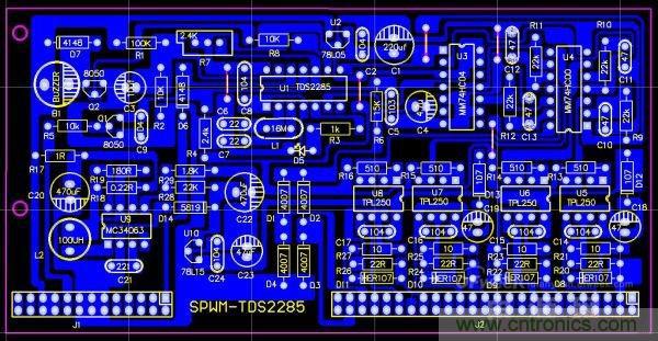 SPWM的驅(qū)動(dòng)核心采用了單片機(jī)SPWM芯片TDS2285,所以,SPWM驅(qū)動(dòng)部分相對(duì)純硬件來講,比較簡單,制作完成后要調(diào)試的東西很少,所以,比較容易成功。