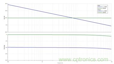 轉(zhuǎn)換器回路增益和帶寬的調(diào)節(jié)由C6單獨(dú)設(shè)定。較小的C6值會(huì)由于其較高的阻抗而增加增益,而較大的值會(huì)減小增益。應(yīng)該將增益值設(shè)置得足夠低,以確保較好的穩(wěn)定性,要避免將增益值推得過(guò)高。還有一些未包含在此模型中的其它二階效應(yīng),諸如斜坡補(bǔ)償,會(huì)在較高頻率時(shí)影響到增益和相位。