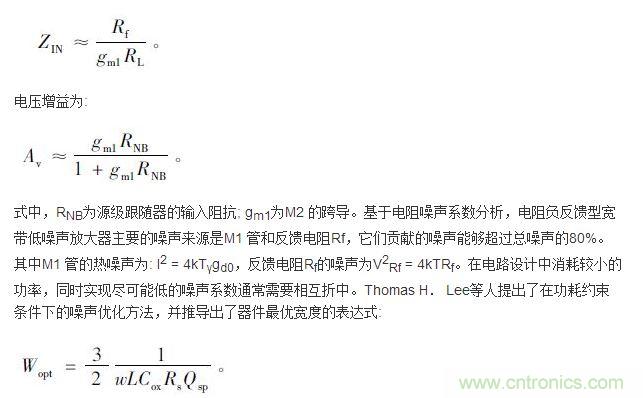 圖1 電阻負反饋型低噪聲放大器原理