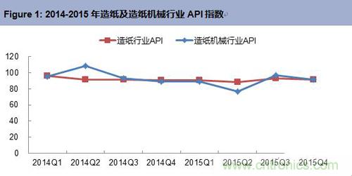 自動化產(chǎn)品在造紙及造紙機(jī)械行業(yè)的應(yīng)用十分廣泛,主要的產(chǎn)品類型有傳動系統(tǒng)、控制系統(tǒng)、執(zhí)行機(jī)構(gòu)和過程控制儀表等。2015年四季度造紙行業(yè)自動化產(chǎn)品市場規(guī)模為2.32億元,同比下滑8.5%;造紙機(jī)械行業(yè)自動化產(chǎn)品市場規(guī)模為0.41億元,同比下滑8.4%。行業(yè)API指數(shù)均小于100。受整體經(jīng)濟(jì)環(huán)境低迷、產(chǎn)能過剩矛盾、資源整合、行業(yè)結(jié)構(gòu)調(diào)整等因素影響,且隨著“新環(huán)保法”、“水十條”等環(huán)保新政的出臺和實(shí)施,造紙行業(yè)新建和改造項(xiàng)目減少,從而使造紙及造紙機(jī)械行業(yè)自動化產(chǎn)品市場規(guī)模萎縮。