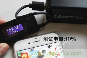 測(cè)試電量:10%(原裝充電器;第三方充電器;USB口插板)點(diǎn)擊看大圖