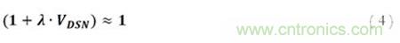 必須注意的是,這里可以很大程度上忽略通道寬度調(diào)制的影響。這是因?yàn)槿魏我蚵O電壓上升導(dǎo)致的漏極電流的上升會(huì)在通過RSET電阻后下降,并導(dǎo)致源電壓的上升。為了使MOSFET能維持任何電流,柵極電壓必須大于源電壓與閾值電壓的和。也就是說,給定一個(gè)柵極電壓,源電壓將被限制在至少比柵極電壓小一個(gè)閾值電壓的值,且再大的漏極電壓上升也不會(huì)提升漏極電流。因此,構(gòu)建相應(yīng)運(yùn)行條件,RSET必須足夠大,從而確保在上述限制下可允許作出以下假設(shè):