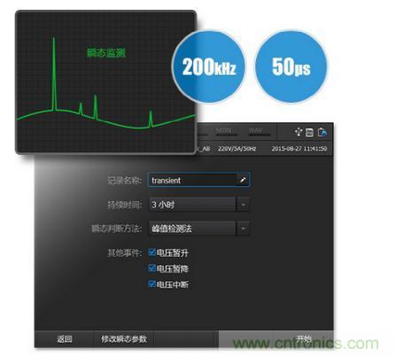 致遠(yuǎn)電子E6500電能質(zhì)量和能效分析儀采樣采用芯片,200kHz高速定頻采樣,可捕獲最短50μs波形瞬間脈沖,同時支持瞬態(tài)事件無損錄波功能,讓用戶發(fā)現(xiàn)難以察覺的電能質(zhì)量驟變問題。