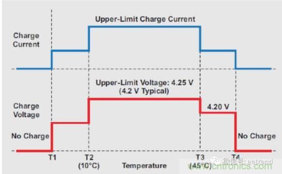 圖1:為保證鋰離子電池充電安全,JEITA規(guī)范規(guī)定的溫度區(qū)