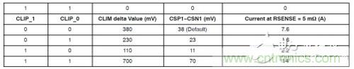 表1:5 m檢測(cè)電阻對(duì)應(yīng)的峰值過(guò)流保護(hù)值(正向過(guò)流保護(hù))