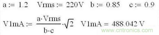 3、b為壓敏電阻誤差,一般取值0.85.