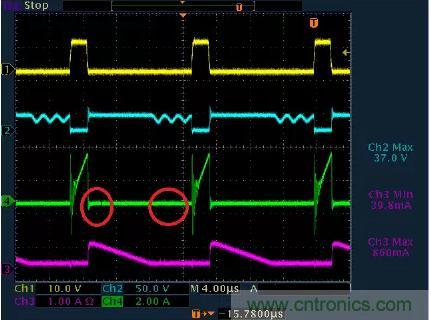 因此我們就可以很容易從波形上看出來反激電源是工作在CCM還是DCM狀態(tài)。