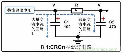 c.而電容容量大(C2>C1),流過C2的是低頻交流成分,對低頻交流干擾濾波效果較好。