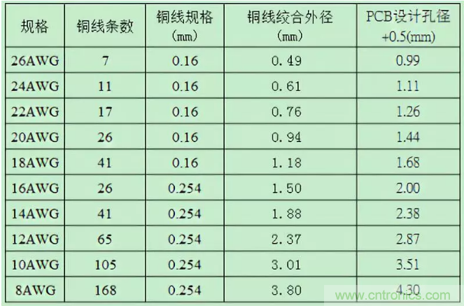 多根飛線直徑計(jì)算參考如下表格: