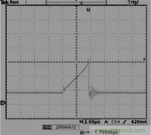 32.反激拓補(bǔ)結(jié)構(gòu),變壓器B值需小于3500高斯,如果變壓器飽和一切動(dòng)作將會(huì)失控,如下,上圖為正常,下圖為飽和。