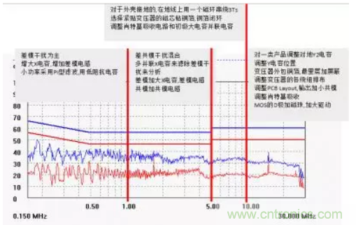 36.輻射整改,分段處理經(jīng)驗(yàn),如下圖,適合一些新手工程師,提供一個(gè)參考的方向,有些情況并不是能直接套用,最主要的還是要搞清楚EMI產(chǎn)生的機(jī)理。