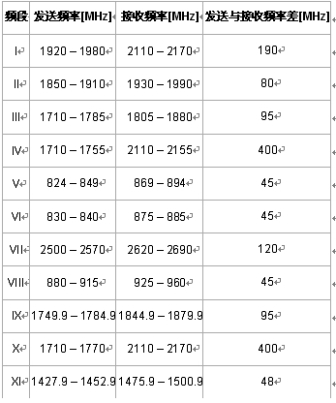 表1:當前手機的使用頻帶