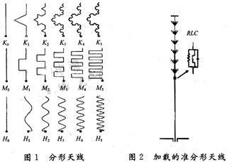 由于單純的RLC加載對小型化天線設(shè)計具有局限性。在保證一定效率的前提下,要進一步減小單極子天線的尺寸,還需要做進一步的研究。其中彎折線天線和分形天線是適應(yīng)設(shè)計發(fā)展的又一技術(shù)方法。如圖1所示。