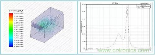 此處仿真時(shí),需要特別注意端口的簡(jiǎn)歷方式,需要順著電場(chǎng)的方向。在計(jì)算耦合帶寬時(shí),能同時(shí)觀察到濾波器通帶諧波出現(xiàn)的頻率點(diǎn),通過合理選擇耦合窗口的大小,開口方向,盡量降低高次模諧波幅度。