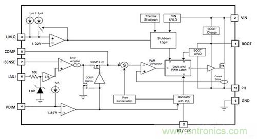 圖 3: TPS92513/HV LED 驅(qū)動器的功能框圖。