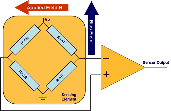 在現(xiàn)有的各種不同磁感應計芯片制造技術中,各向異性磁阻(AMR)傳感器的發(fā)展勢頭銳不可擋,因為其能夠提供高空間分辨率和高精度,而且功耗很低,這對于電池供電的便攜設備而言至關重要。磁感應計的工作原理是通過測量電阻變化來確定磁場強度。