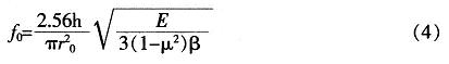 經(jīng)過(guò)分析,綜合考慮設(shè)計(jì)的要求,初步設(shè)定:h=20μm,R=200μm。其固有頻率可以按下式計(jì)算: