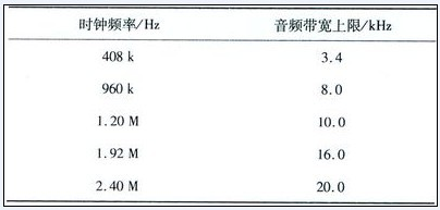 取樣時(shí)鐘與音頻帶寬上限的關(guān)系見表1.
