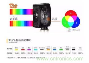 2、用于識(shí)別和比較物體表面顏色值(RGB)的顏色傳感器。這類傳感器一般采用通過(guò)RGB(紅色,綠色,和藍(lán)色)LED光源和運(yùn)算檢測(cè)物體反射光中R,G,B波長(zhǎng)比率,來(lái)判斷檢測(cè)到的顏色是否和設(shè)定的一致。類似于彩色相機(jī)。