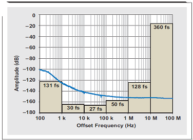 圖 6 每十倍頻計算得到的時鐘相位噪聲抖動影響